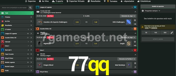 O 77qq oferece uma grande seleção de opções de apostas em e-sports com probabilidades competitivas